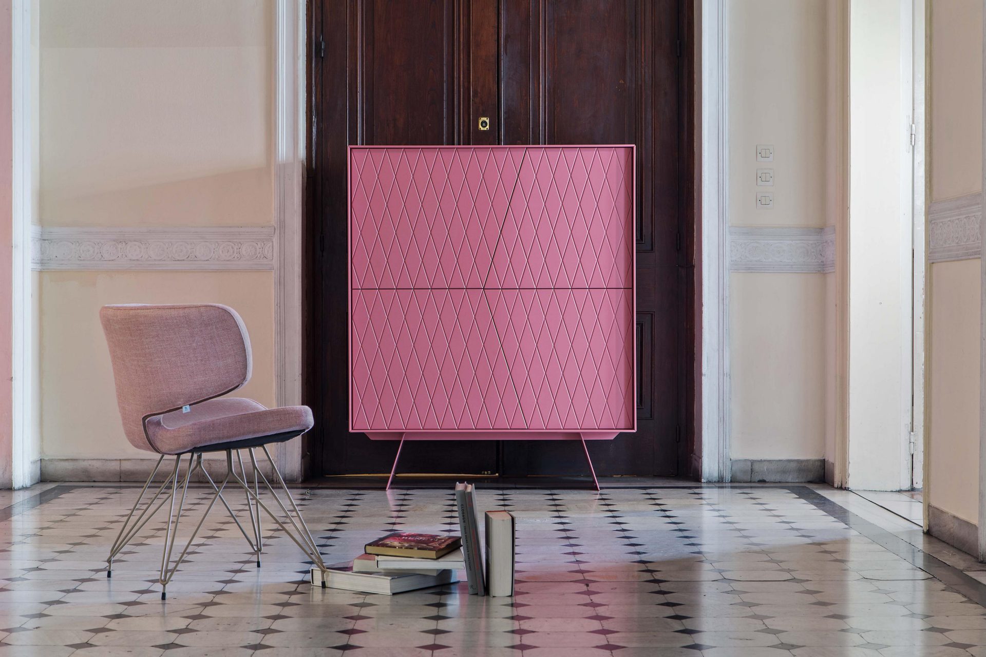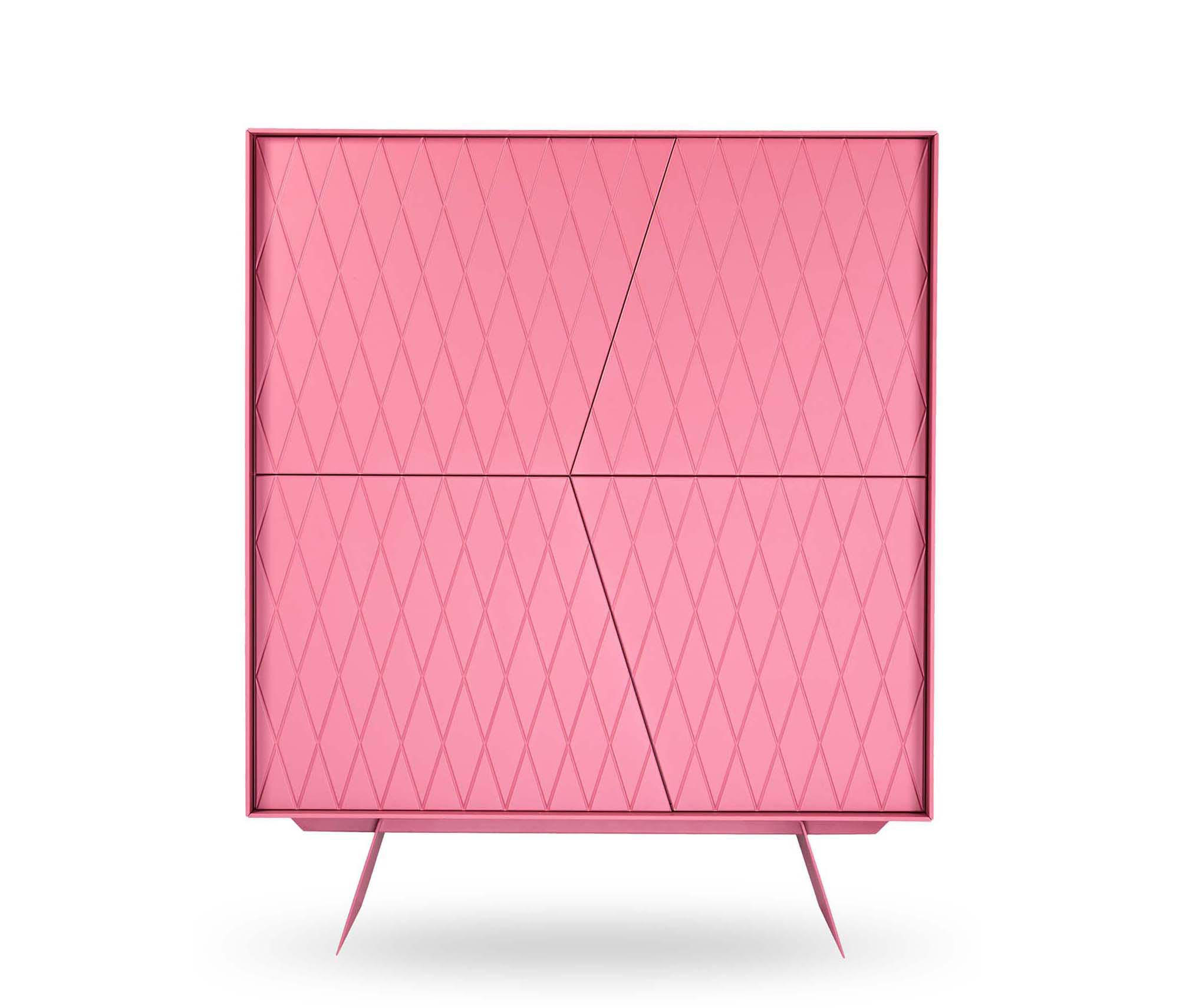 T.V. unit in various sizes with one drawer, one drop door, one open space and lacquered metal base.