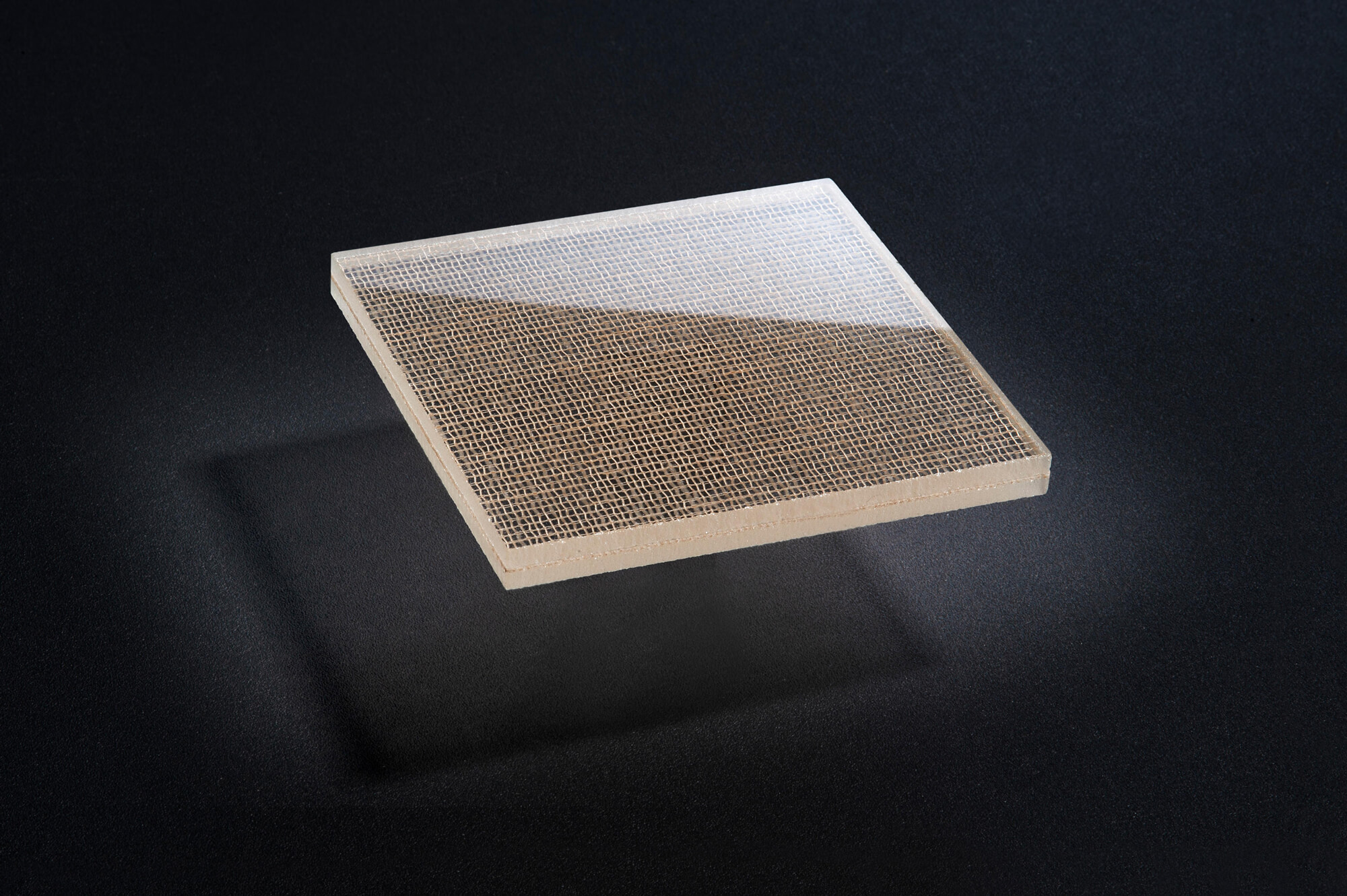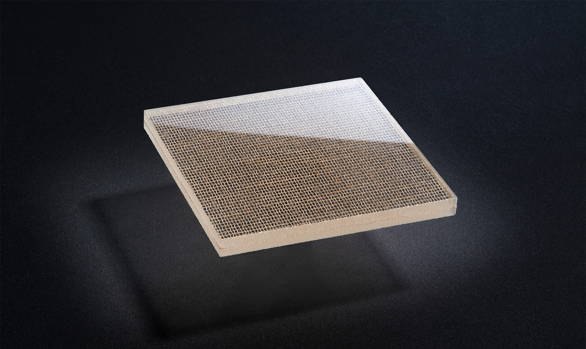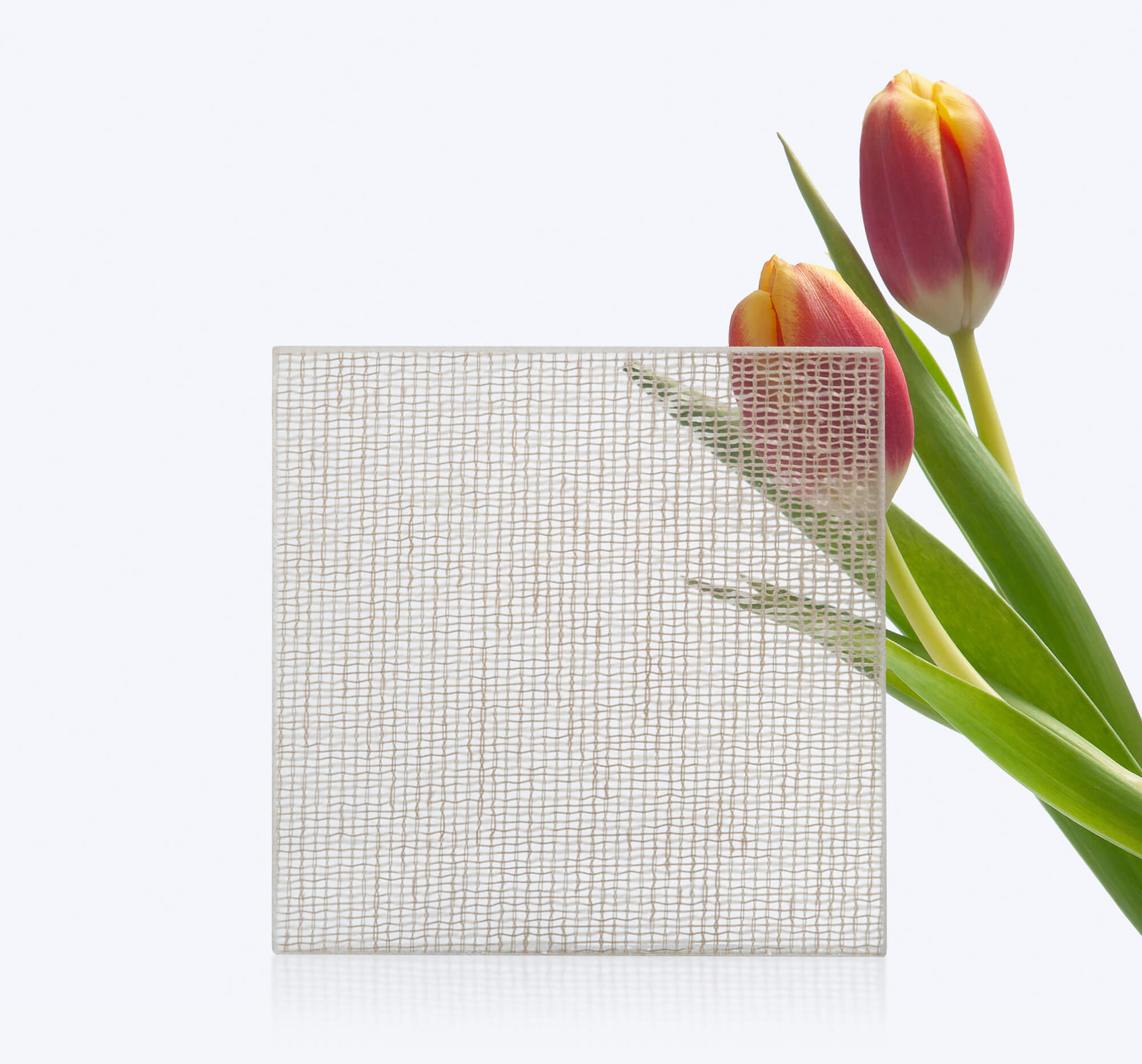 LAMINATED GLASS PANEL WITH FABRIC ENCAPSULATED INSIDE