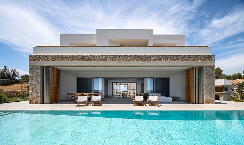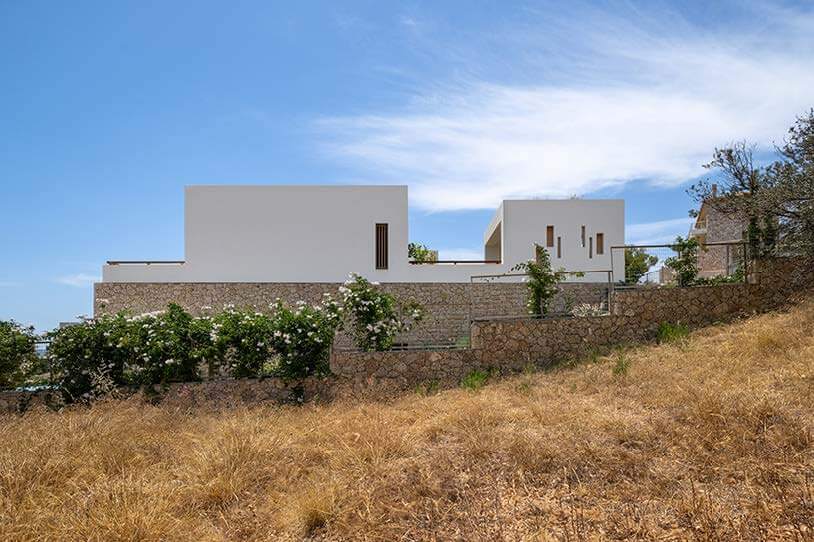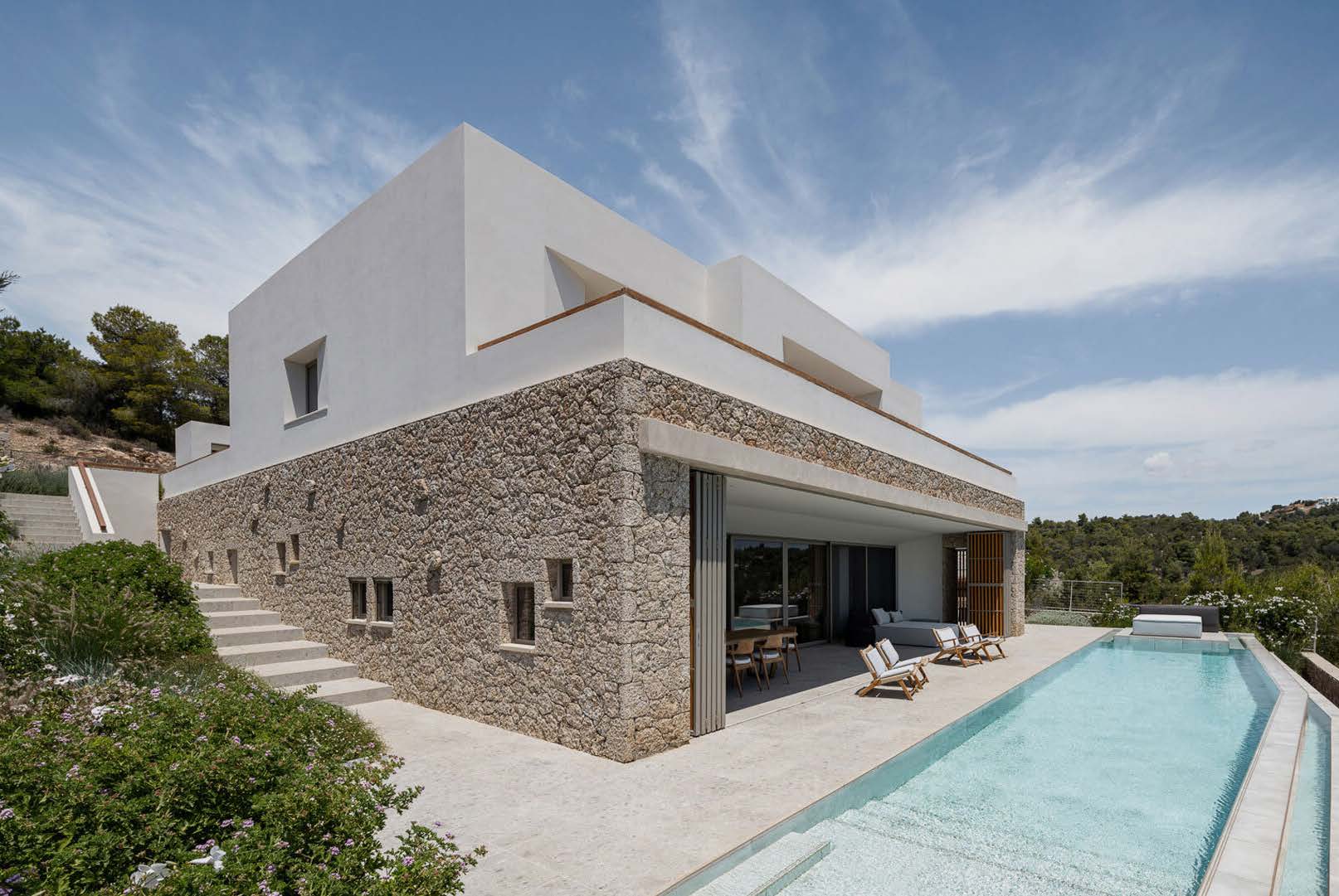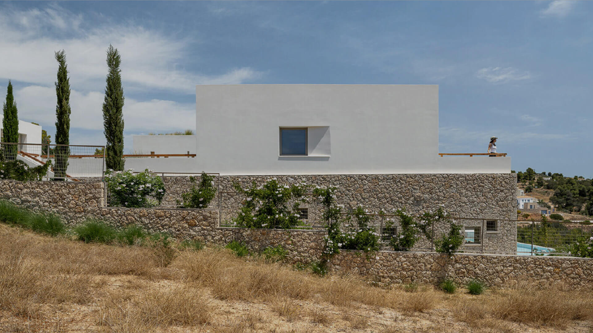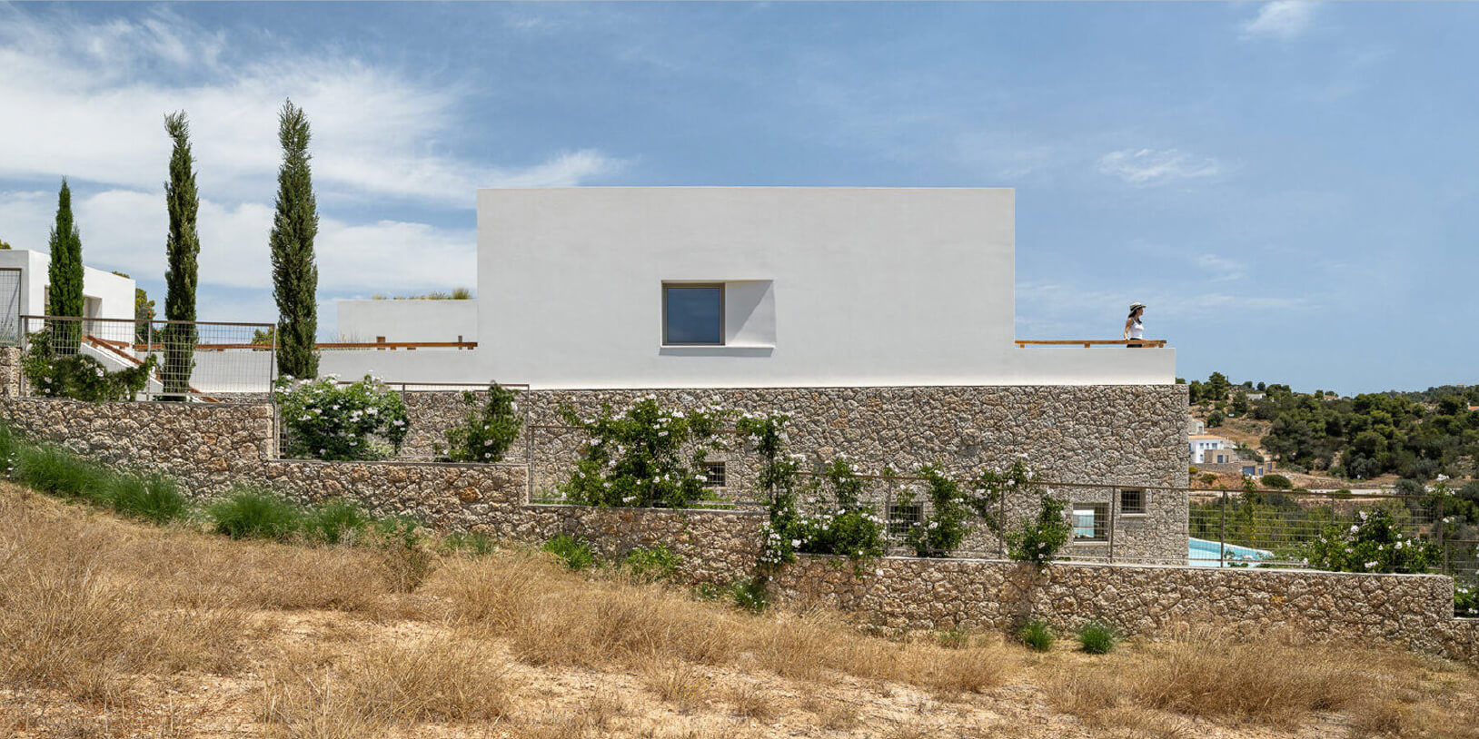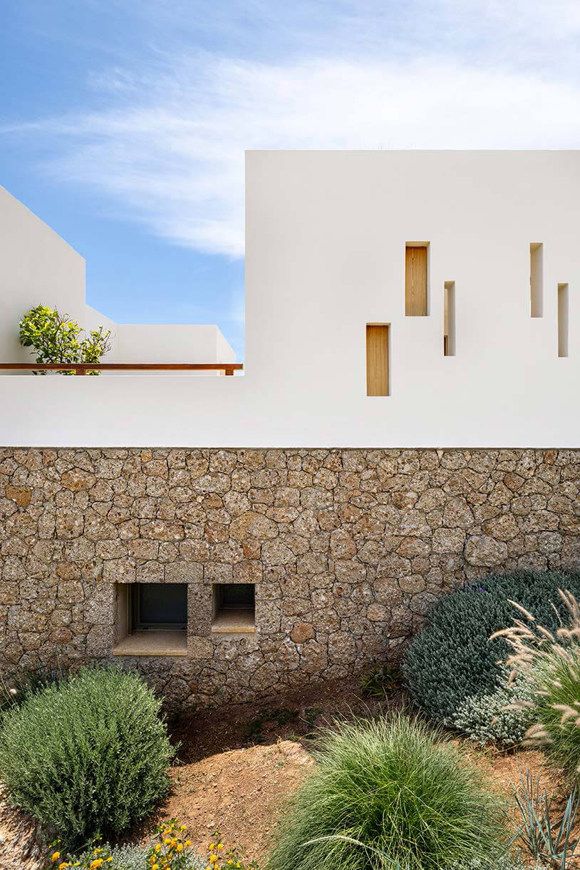 Το Casa Incognita των Pieris.Architects συνδυάζει πέτρα και λευκό σοβά.