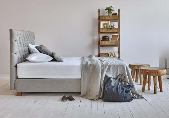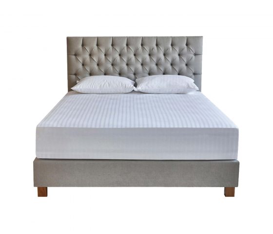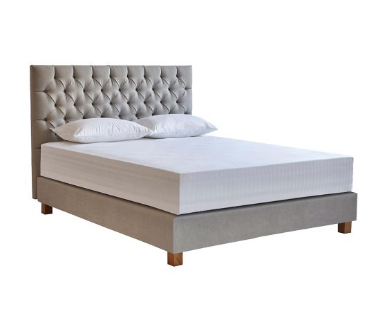 Benitses is an elegant and romantic upholstered bed, with button tufting on headboard.