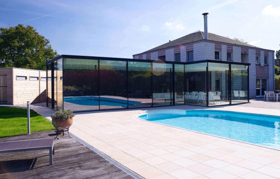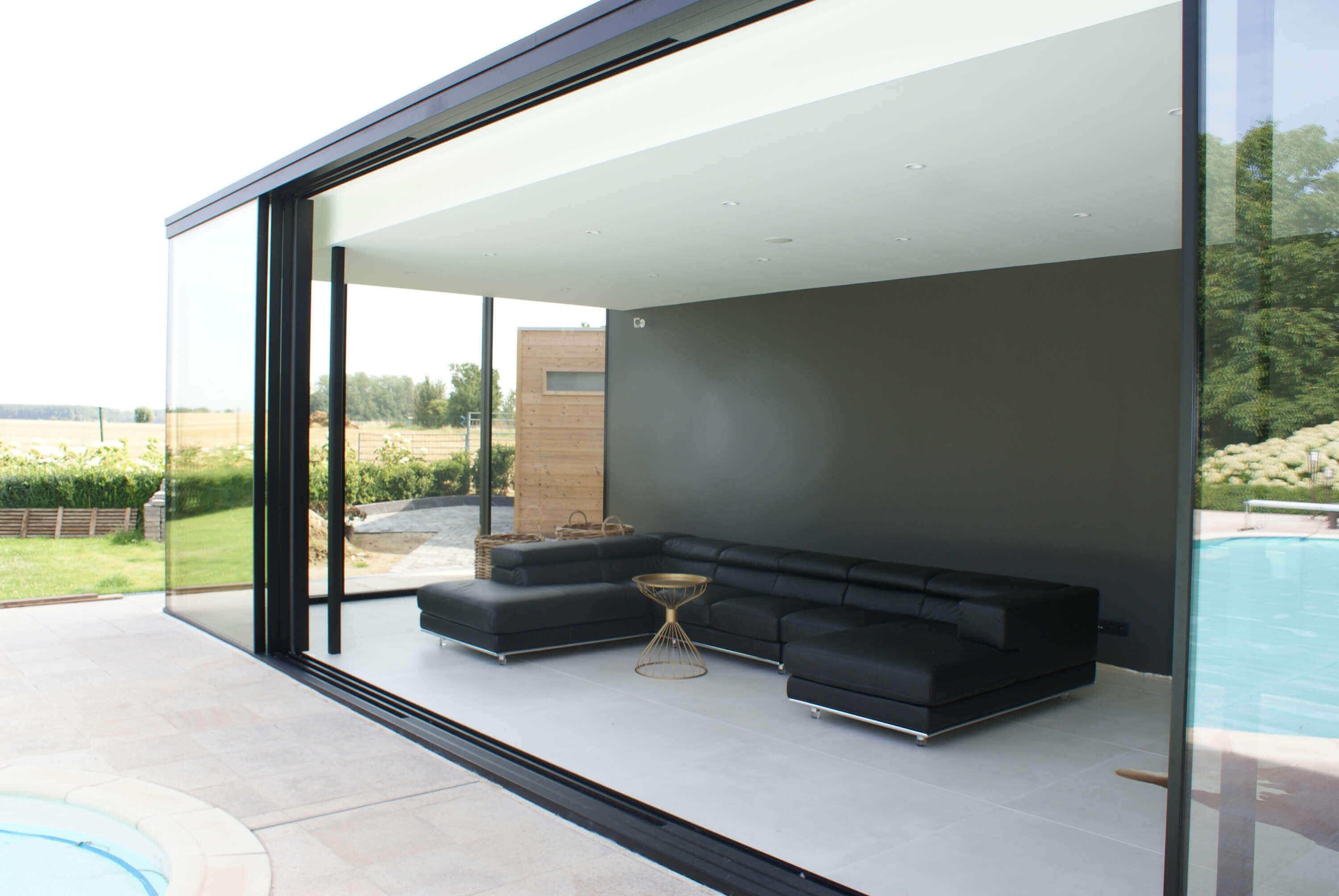 Frameless transparency from floor to ceiling achieved by a fully concealed track system. Orama sliding systems offer possiblities that can go beyond the most unique vision of the architect: Fix corner, Open corner, Double Sliding Corner, Double Sliding Fix, Sliding Pocket…