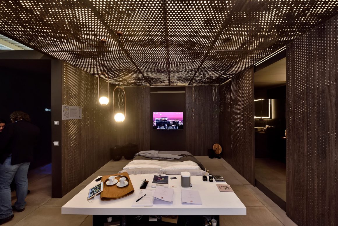The design of the real HOTEL MEGATRENDS installation was based on the interaction of the above four axes, in an attempt to create a new experience that would be experimental, very social, friendly and creative. The project aimed at generating ideas in order to rethink the standards of conventional hosting spaces and how Design most radically affects the mode and manner in which a hotel responds to the needs of guests and the local community. The purpose of the overall design was to come up with a hosting space experimenting and developing along with the local community while at the same time responding to the wishes and expectations of the modern traveller. Nowadays, the important elements sought by the visitor are friends, well-being, quality food, high aesthetics but also modern technology. The new modern traveller appreciates intimacy, social responsibility, flexibility, the value and local features of the place they visit.